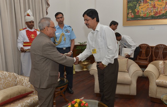 Prof Bhattacharyya with the President of India at the Rashtrapati Bhawan as an Inspired Teacher under Inspired Teachers In-Residence Programme 2015.