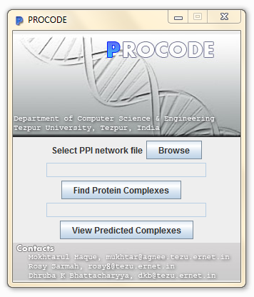 The executable of PROCODE, a graph based tool for finding protein complexes is made available through this page.